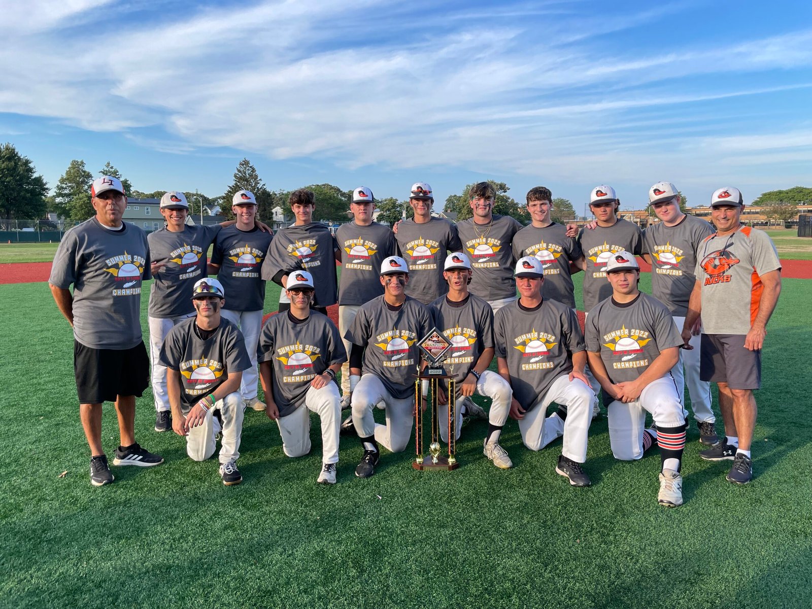 Nolan Britt would settle in quite nicely as he tossed scoreless inning after scoreless inning ultimately completing this game surrendering only one run on five hits while striking out nine hitters and earning the victory. Austin Bakalo was also superb in relief as he notched six strikeouts over five innings. It was quite a special season for both teams as The Lions, who have been playing together for the town of West Islip since little league, finished 23-2 and runner up in the American Division. The Junior Ducks end the season 22-1-1 and as American Division Champs.