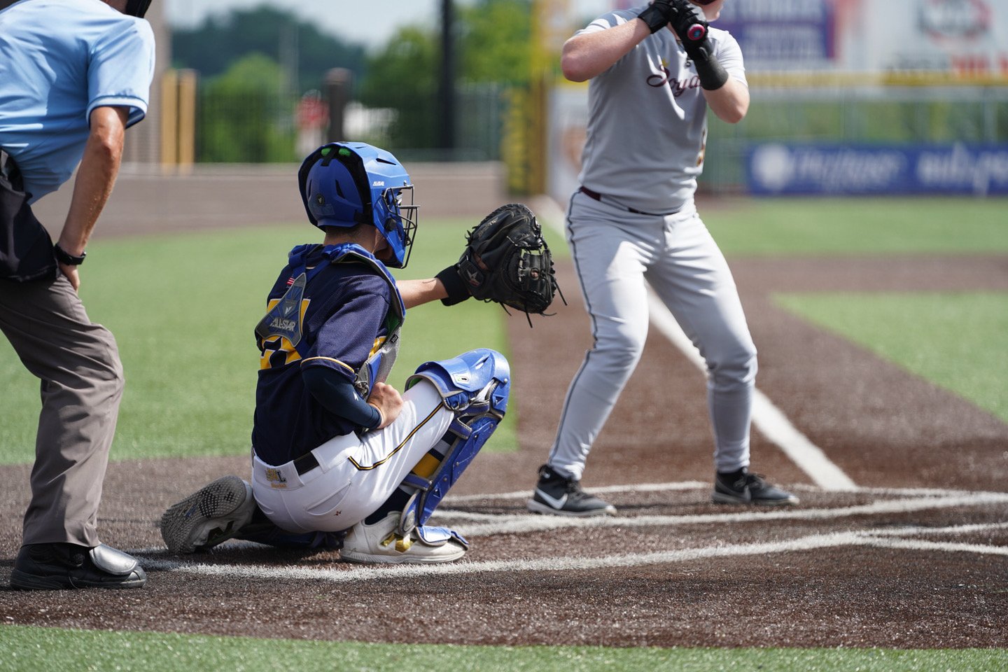 Next Level catcher Michael Cotto (Kellenberg 2028) throws out the runner attempting to steal second to end the fifth