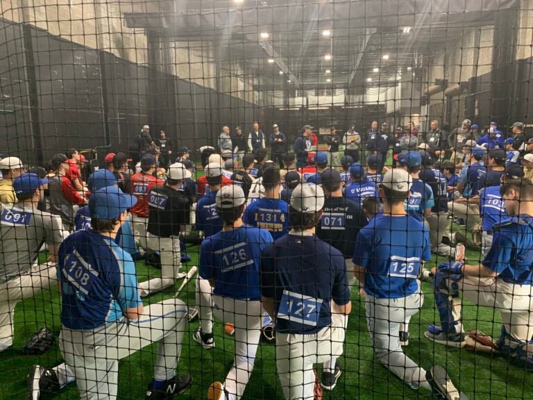 Yesterday’s college showcase featured more than 60 players performing in front of 20 college coaches and two pro scouts at Max Effort Baseball. Despite the ominous weather forecast, we were